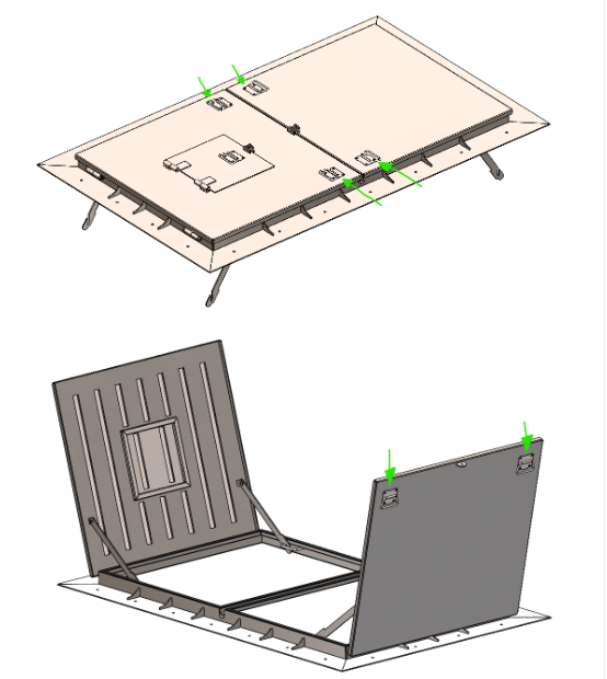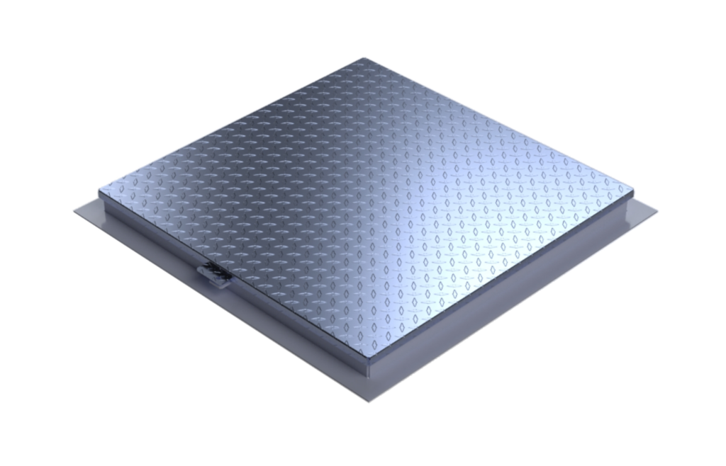Checker plate covers are used for access to shafts, manholes, and technical installations. In some cases, they can also be used for smoke and heat ventilation. Our Solid Overlapping ground access cover is approved for smoke and heat ventilation.
