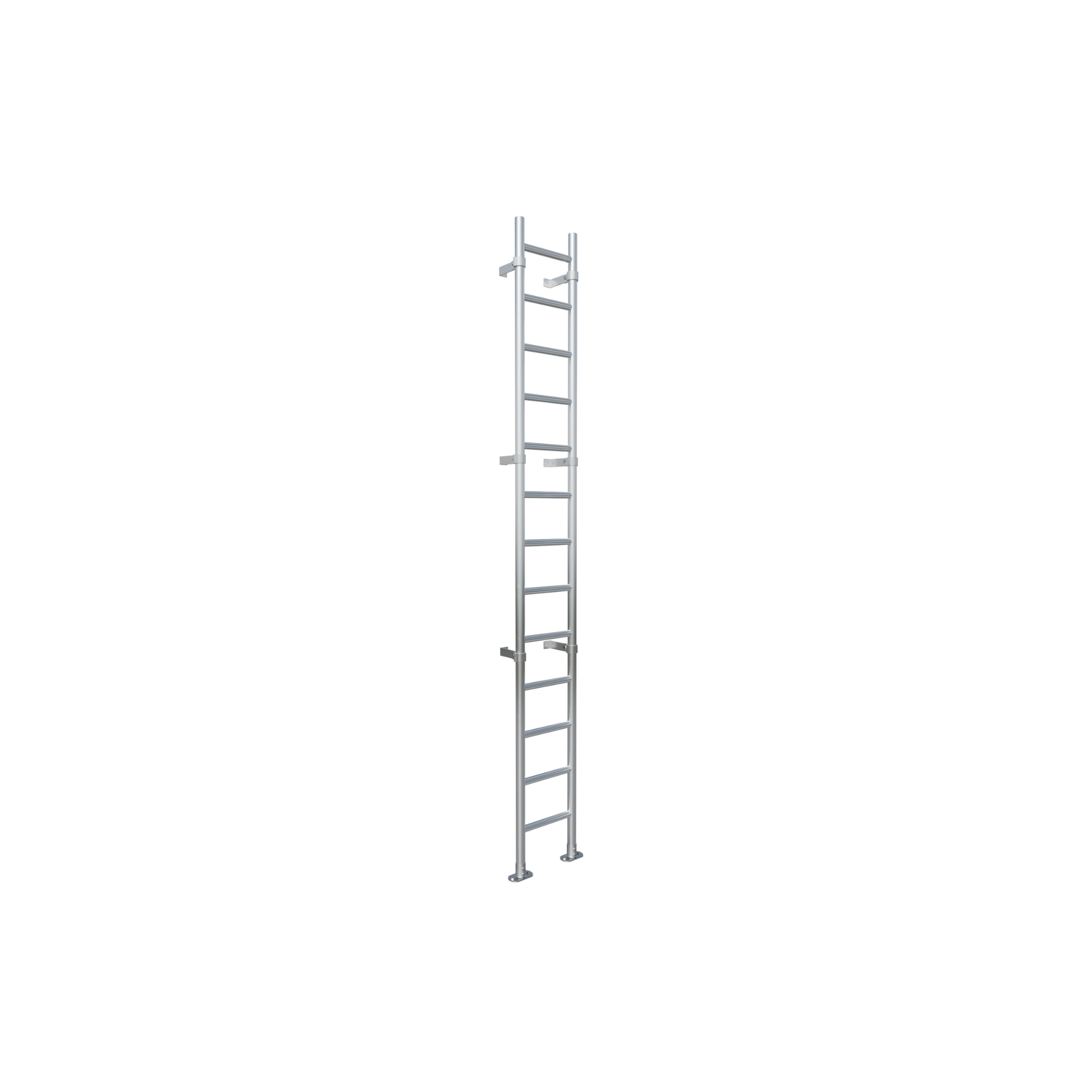The ladder is designed in accordance with the British Standard BS 4211:2005 and meets relevant requirements for fixed access ladders. It can be installed both indoors and outdoors on façades, industrial buildings and technical enclosures. For installations above 2.5 metres, the ladder can be equipped with a safety cage for enhanced protection.