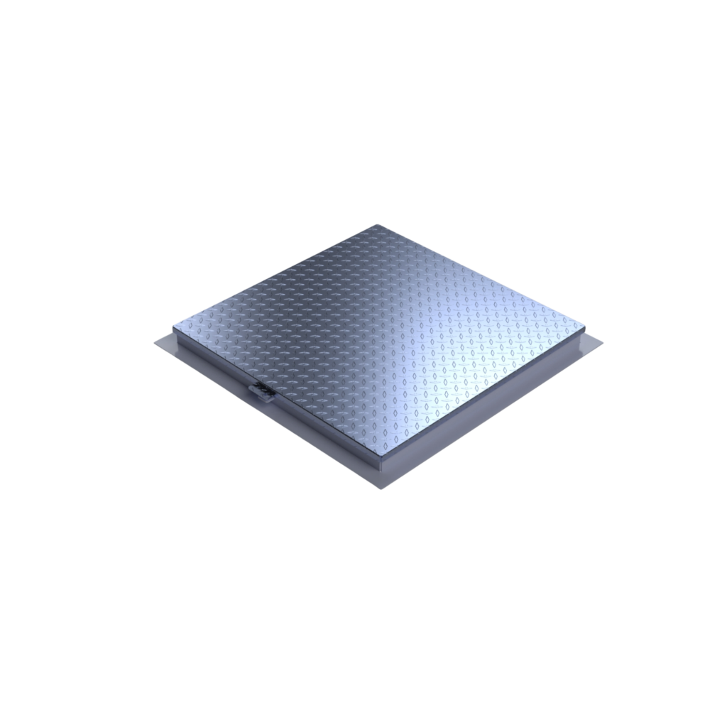 Checker plate covers are used for access to shafts, manholes, and technical installations. In some cases, they can also be used for smoke and heat ventilation. Our Solid Overlapping ground access cover is approved for smoke and heat ventilation.
